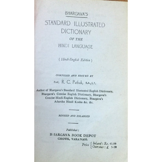 Bhargav Dictionary Hindi English by Prof R C Pathak